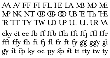 Mrs Eaves est pourvue d’une riche collection de ligatures