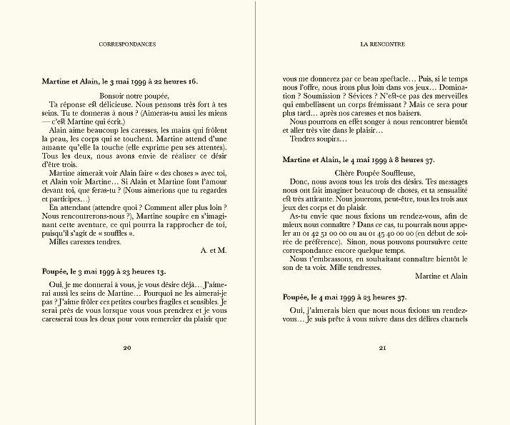 mois de mai 1999, sur une messagerie rose du Minitel, entre une