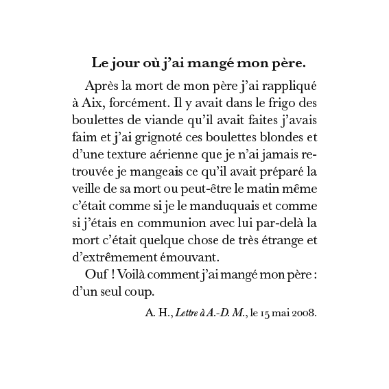 mon aimée, A.-D. M., dont la passiongastronomique est bien connue de tous… …