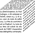 Une milice privée à la solde de nombreux éditeurs, Attributor, m’informe pour la seconde fois en un an que le Droit à la paresse serait la propriété exclusive et inaliénable d’un de ses clients, la maison d'édition Editis : en effet, une des filiales de ce conglomérat, nommée La Découverte, a réédité ce texte en l’augmentant d'une préface et d’une étude critique. Et voilà qu’Attributor prétend qu’Editis serait à ce titre dépositaire des droits sur l’œuvre de Paul Lafargue et me somme de retirer le PDF que vous pouvez télécharger ici, sous peine des plus graves représailles ! Paul Lafargue est mort en 1911, voilà qui ne trouble guère ni Editis ni ses mercenaires : on ne s’étonnera pas que des détrousseurs de morts et de vivants aient aussi des mœurs, une mentalité et des pratiques de gangsters.